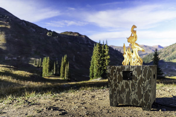 Live Outdoor FireStorm Portable Gas Fire Pit in Mossy Oak Bottomland